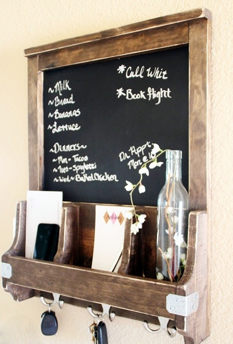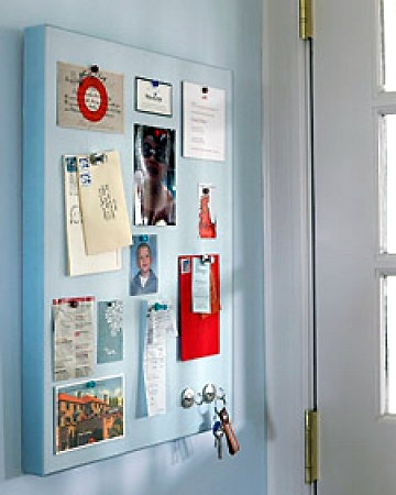 Ένα κομμάτι ξύλου, μια παλιά κορνίζαχωρίς το τζάμι, οποιοδήποτε ξύλινο ή μεταλλικό αντικείμενο μπορεί να κρεμαστεί στον τοίχο, ένα απλό κομμάτι φελιζόλ ντυμένο με ύφασμα ή χαρτί,φελλός με το μέτρο, αυτοκόλλητο χαρτί για μαυροπίνακα ή η αντίστοιχη ειδική μπογιά, πινέζες, μαγνητάκια, κορδέλες ή λάστιχο και …φαντασία, τα βασικά υλικά που θα χρειαστείτε για να κατασκευάσετε έναν πίνακα ανακοινώσεων στις διαστάσεις και την μορφή που ταιριάζει στο σημείο που θα τον τοποθετήσετε και αναλόγως την χρήση που θέλετε να εξυπηρετεί.