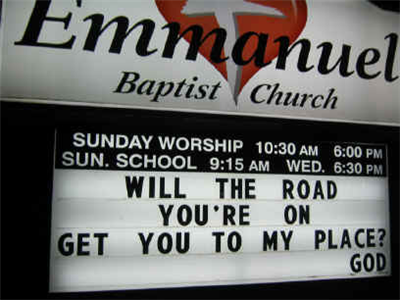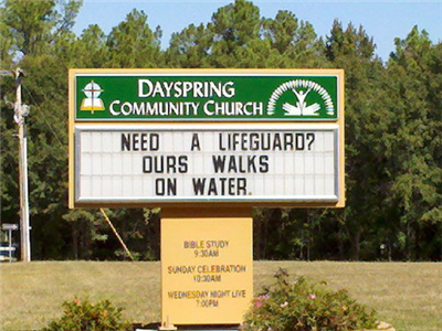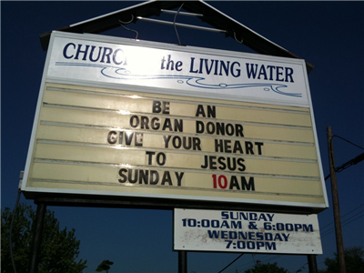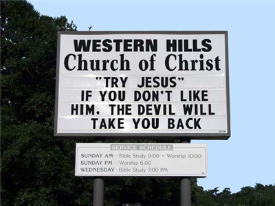 Η ευρηματικότητα των Αμερικανών, πραγματικά, δεν έχει όρια. Ένας συνδυασμός λοιπόν Χόλυγουντ, Πίστης και Αμερικάνικου χιούμορ έχουν ως αποτέλεσμα αυτές τις ταμπέλες διαφήμισης για τις εκκλησίες τους…