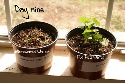 Στη συνέχεια, μετά την ψύξη του, χρησιμοποίησε το νερό σε δύο ίδια φυτά για να δει αν θα υπήρχε καμία διαφορά στην ανάπτυξη μεταξύ του κανονικού βρασμένου νερού και του βρασμένου νερού σε φούρνο μικροκυμάτων.