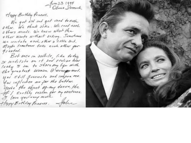 Ο κορυφαίος μουσικός της κάντρι έζησε ένα παθιασμένο έρωτα με την επίσης τραγουδίστρια σύντροφό του, με την οποία έκανε μεγάλη επιτυχία ως ντουέτο. Το γράμμα το έγραψε ο Κας το 1994, όταν η Τζουν ήταν σε ηλικία 65 ετών: